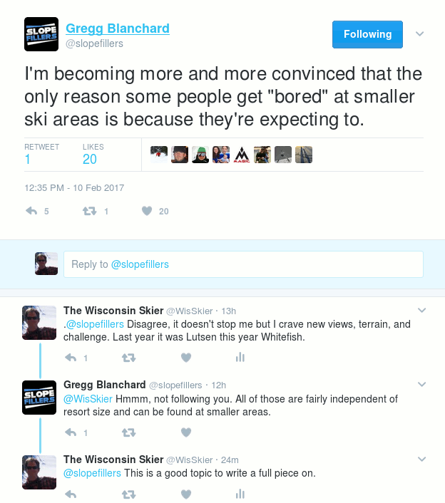 I’m becoming more and more convinced that the only reason some people get “bored” at smaller ski areas is because they’re expecting to.
