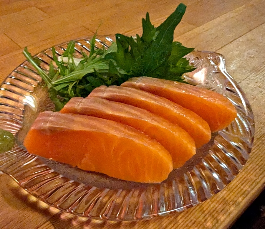 The best dinner though was at a place called Mr. Daruma’s and dinner was a helping of salmon sashimi and gyoza. I had sake with it and there was beer and they had good ole bourbon too which I did have (Bullit and Buffalo Trace was there).